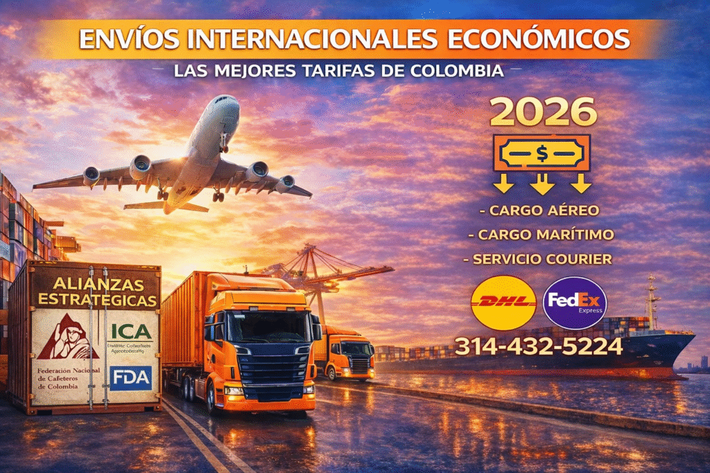 Envíos Internacionales Económicos es una empresa colombiana especializada en envíos internacionales económicos (TARIFAS CORPORATIVAS no las que pagas al por menor, por que haces pocos envíos mensualmente) , exportaciones legales y logística internacional con tarifas corporativas, orientada a personas, emprendedores y exportadores que buscan costos bajos, respaldo legal y seguridad real.